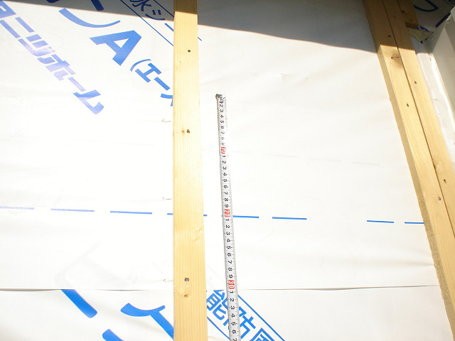 外部防水シート施工状態(重なり部分) |