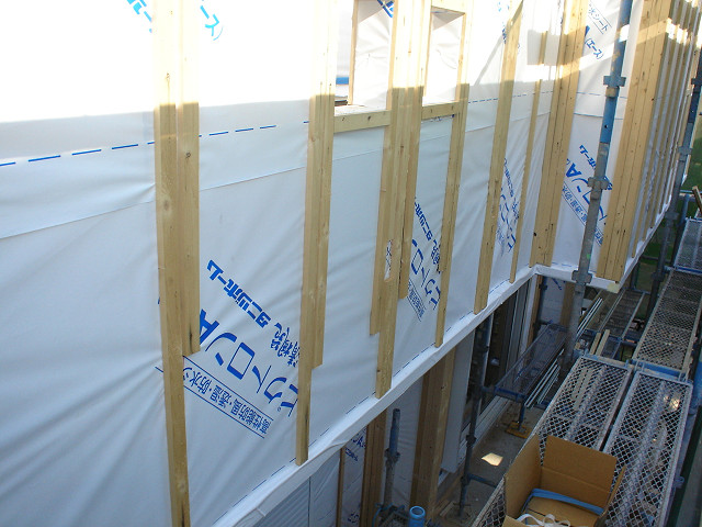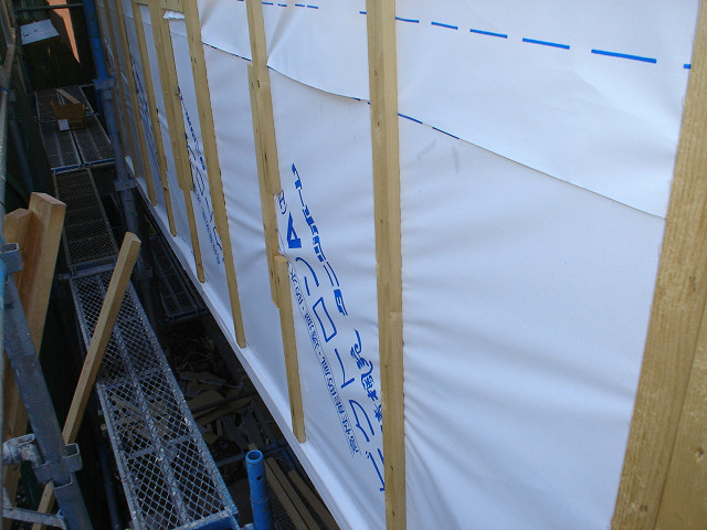 外部防水シートの施工状態 |